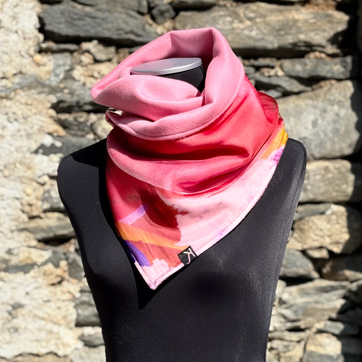 Interno lana  rosa, esterno seta fantasia.