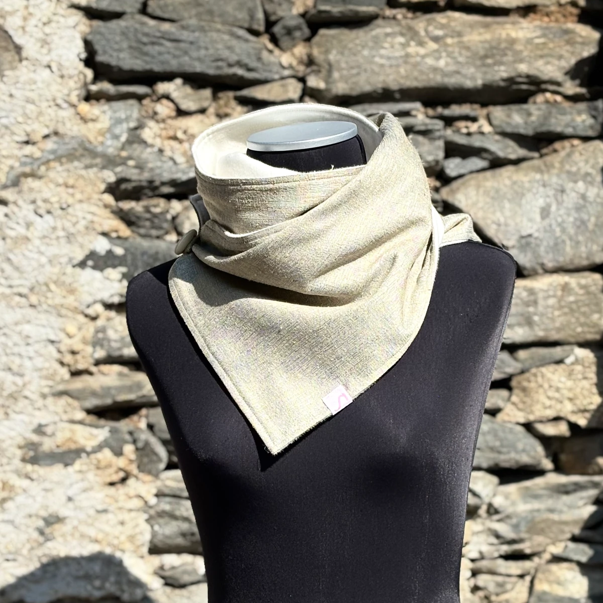 Interno  lana  panna, esterno seta bourrette beige cangiante.