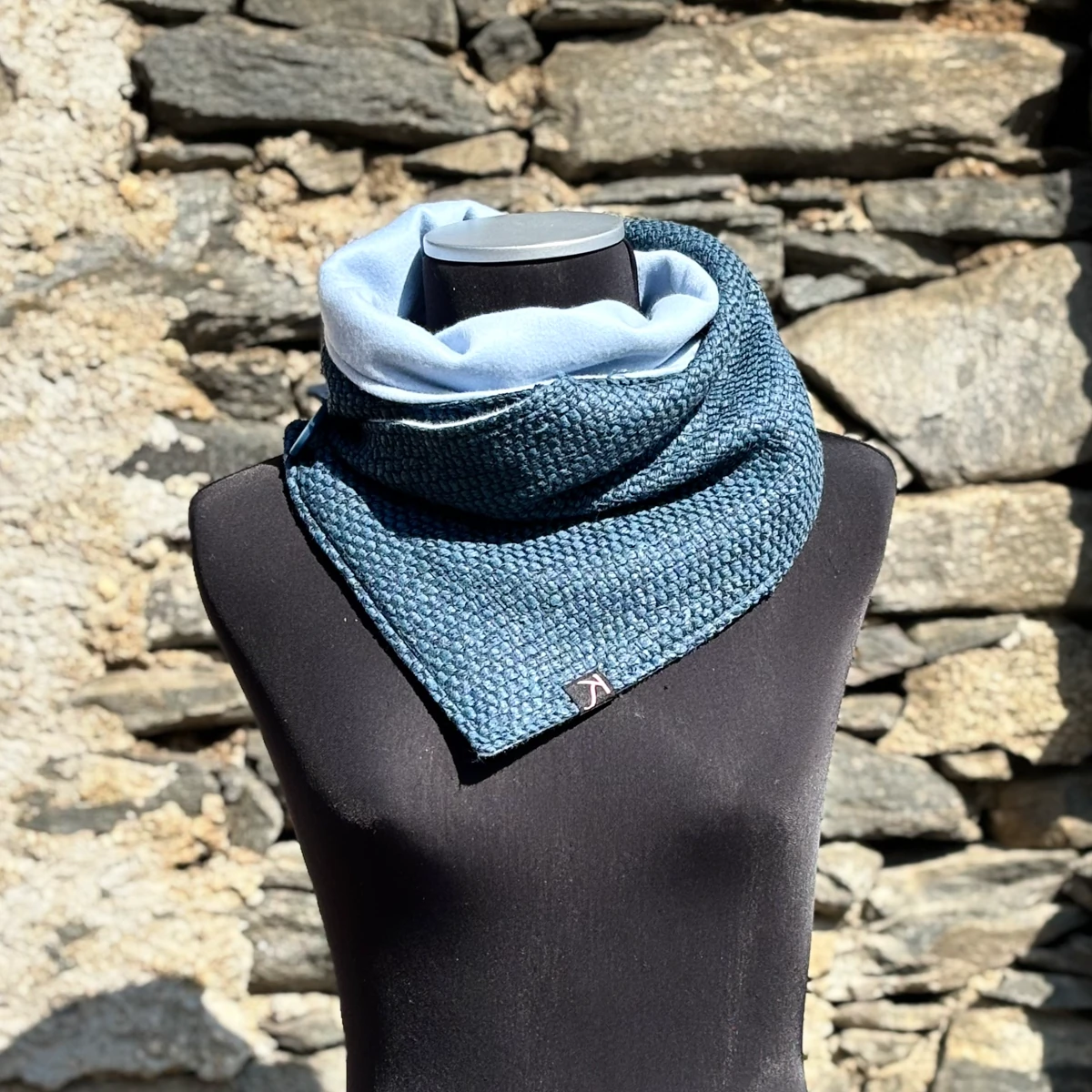 Interno  lana  azzurra, esterno misto seta poliestere.