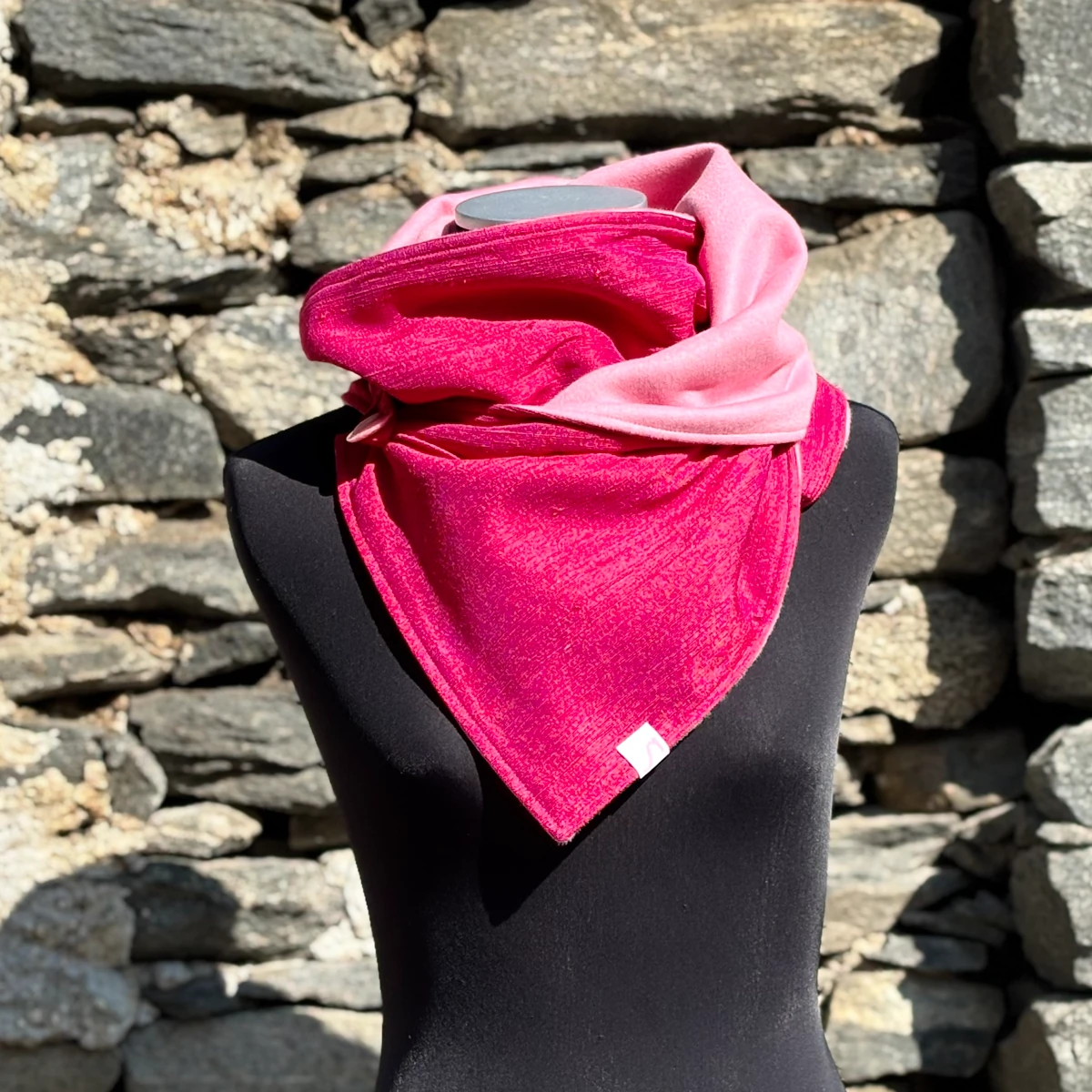 Interno  lana  rosa, esterno seta bourette fucsia.