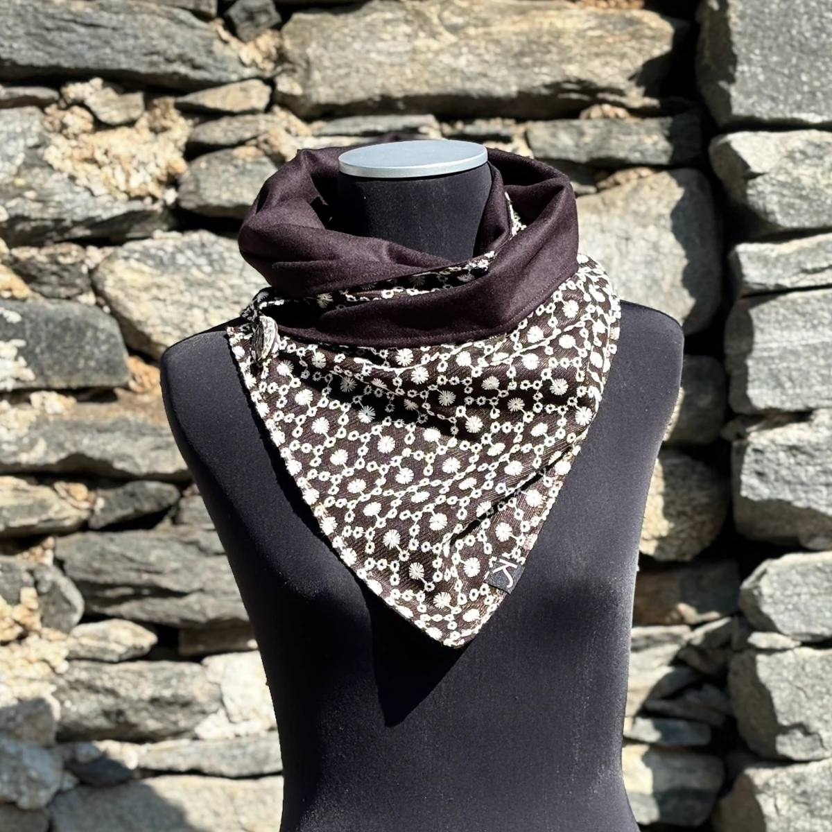 Interno  lana  marrone, esterno pizzo cotone.