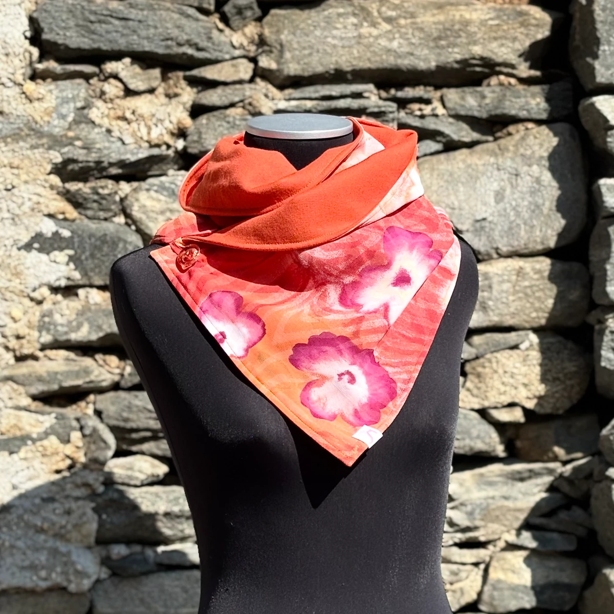 Sciarpa lunghezza circa 125 cm, altezza circa 35 cm, apertura con asola e bottone.