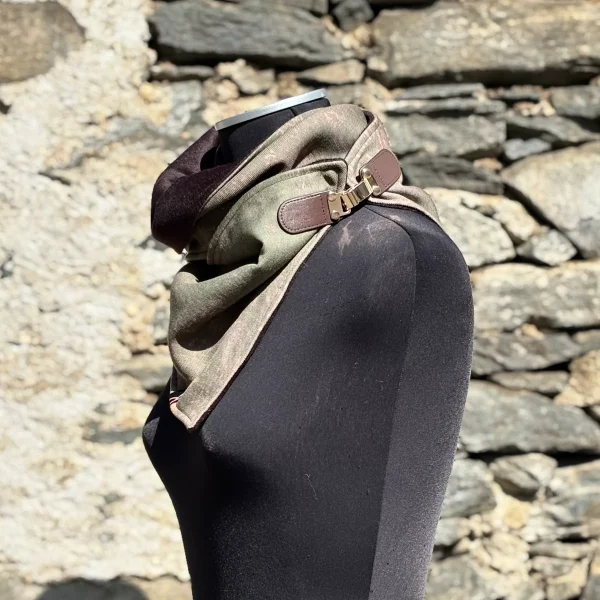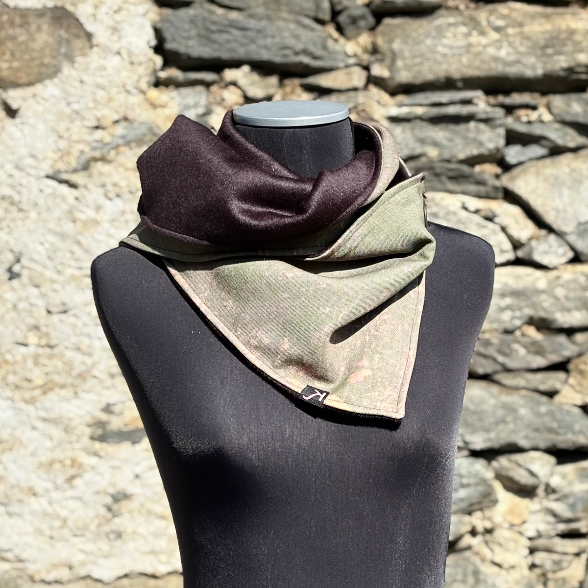 Sciarpa lunghezza circa 125 cm, altezza circa 35 cm, apertura con moschettone