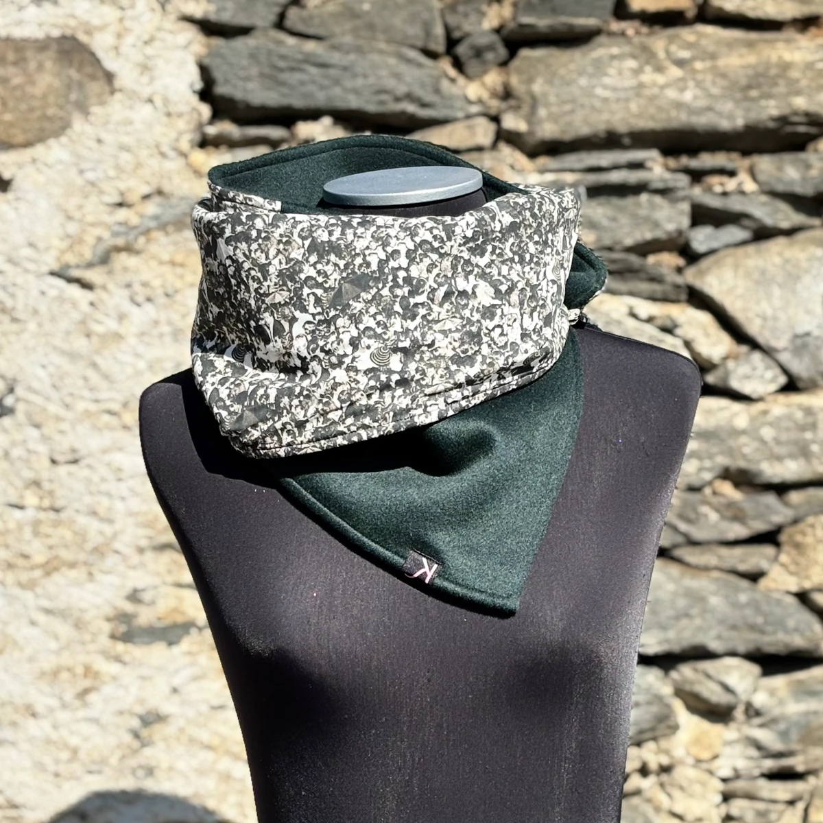 Interno lana verde bottiglia , esterno verde bottiglia e cotone fantasia.