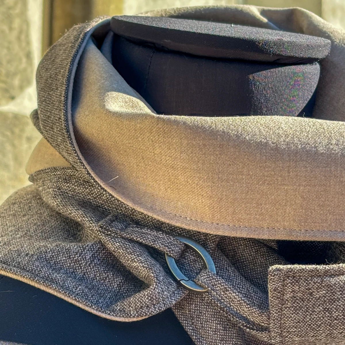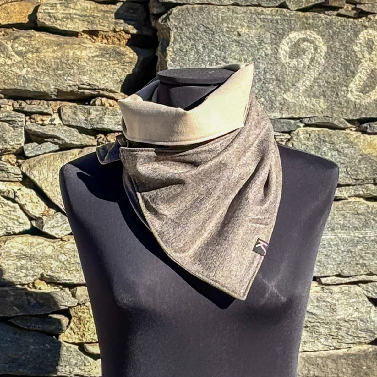 Sciarpa lunghezza circa 120 cm, altezza circa 35 cm, apertura con moschettone.