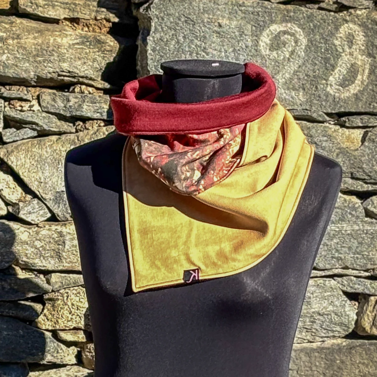 Sciarpa lunghezza circa 120 cm, altezza circa 35 cm, apertura con bottone.